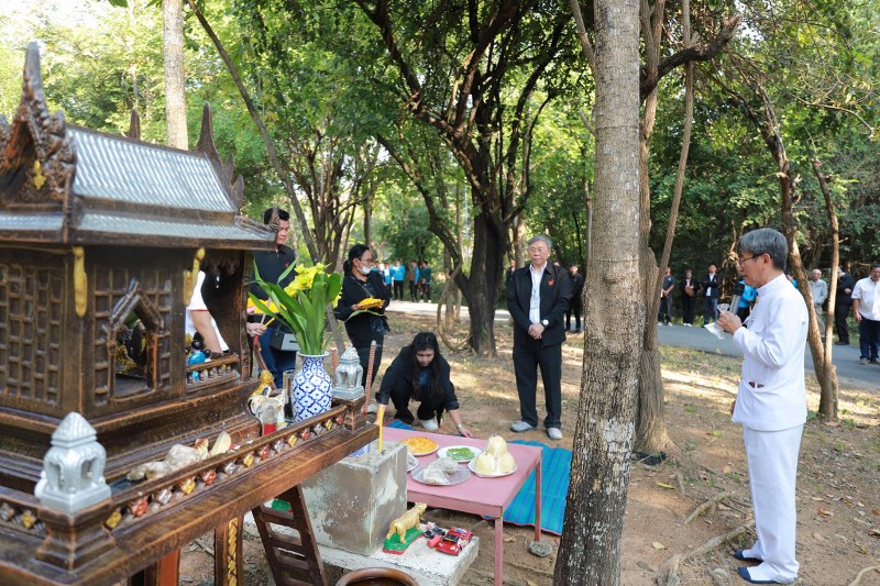 ในช่วงเช้า บุคลากรได้ร่วมพิธีสักการะ พระพรหมเทวา ไหว้ เจ้าพ่อเขากาฬคีรี และ ศาลปู่ไพรโสฬสธ์ เพื่อกราบไหว้สิ่งศักดิ์สิทธิ์ที่ปกป้องคุ้มครองพื้นที่ มจธ. ราชบุรี